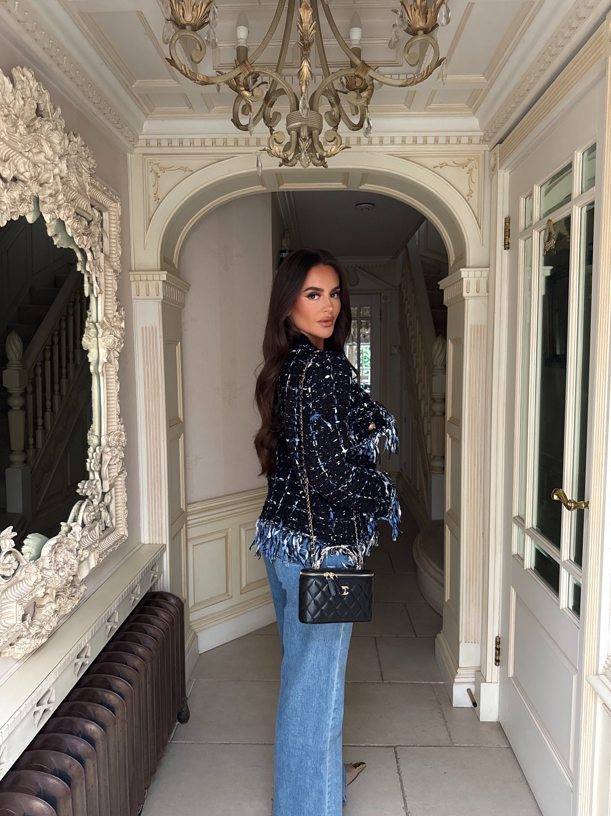 This chunky knit frayed cardigan features a unique design and thick, frayed detailing. It's available in one size, fitting comfortably for sizes 6-14. Stay fashionable and warm with this cardigan that adds a touch of uniqueness to your wardrobe.